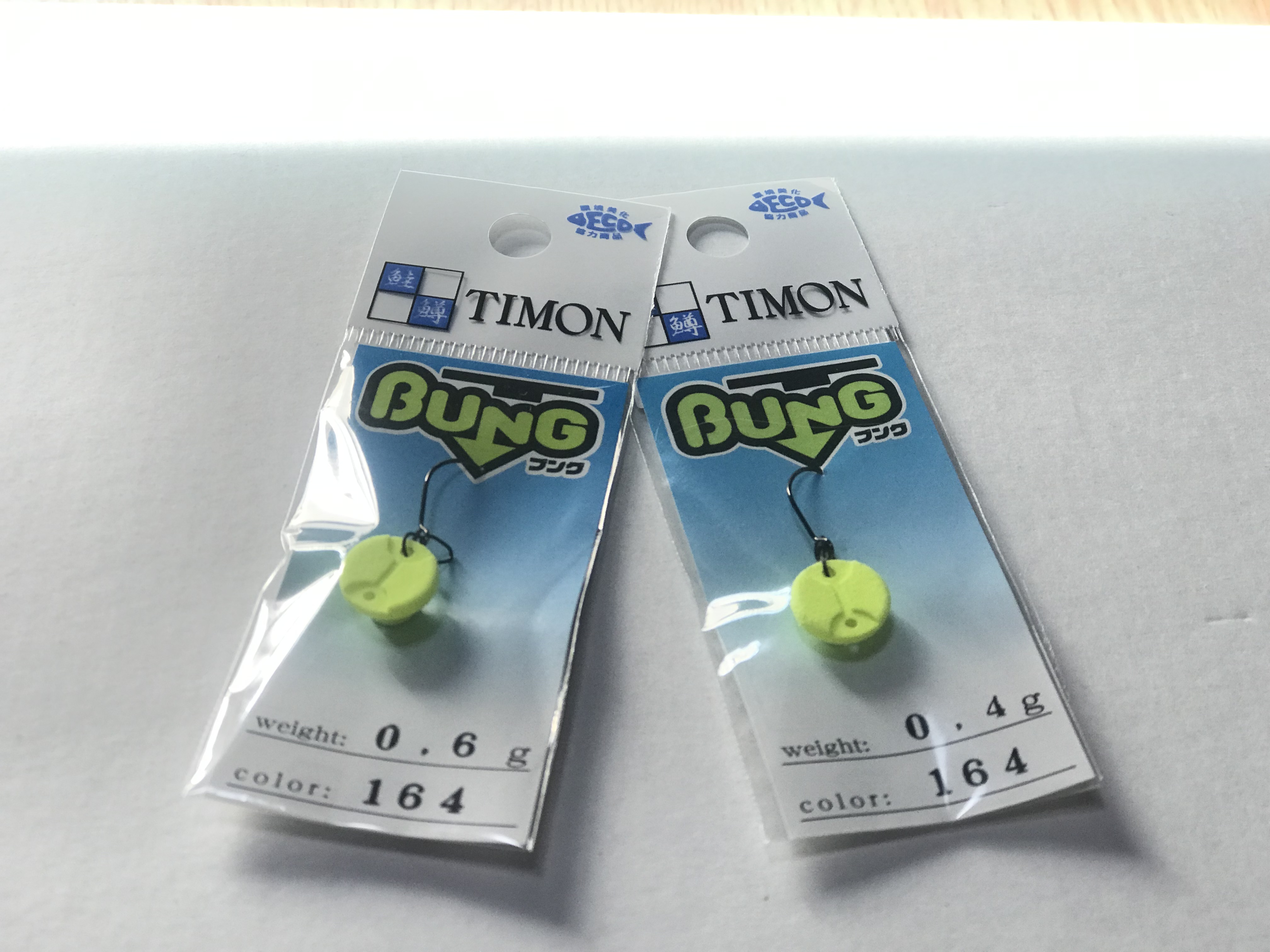 ブングが販売された頃、0.4gを買って王禅寺で使ってみたのですが、リフト&フォールではサッパリでした。5月末のKKCで、たてよこななめさんから、『今はフォールでは釣れない』と伺ったので、釣り方が合ってなかったんですね、きっと。