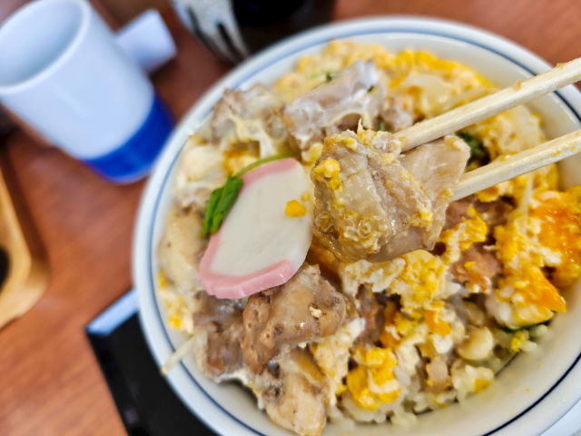 親子丼の具の鶏肉が結構大きめなんですよ。
