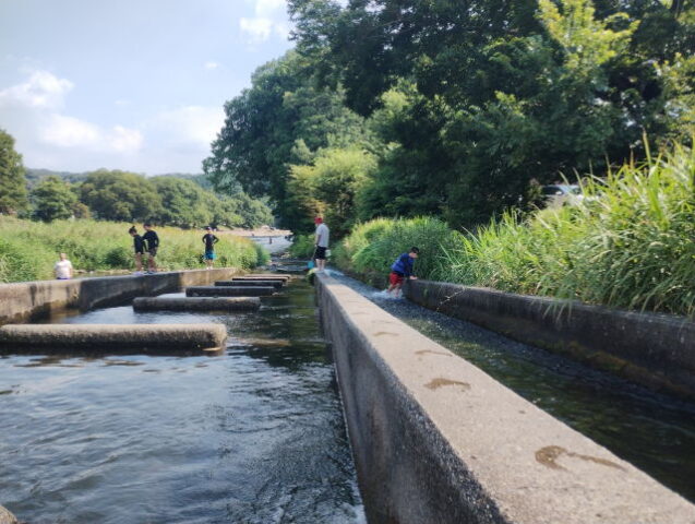 ※魚道脇の坂(写真で言うと右の水路です)は滑って遊べます!