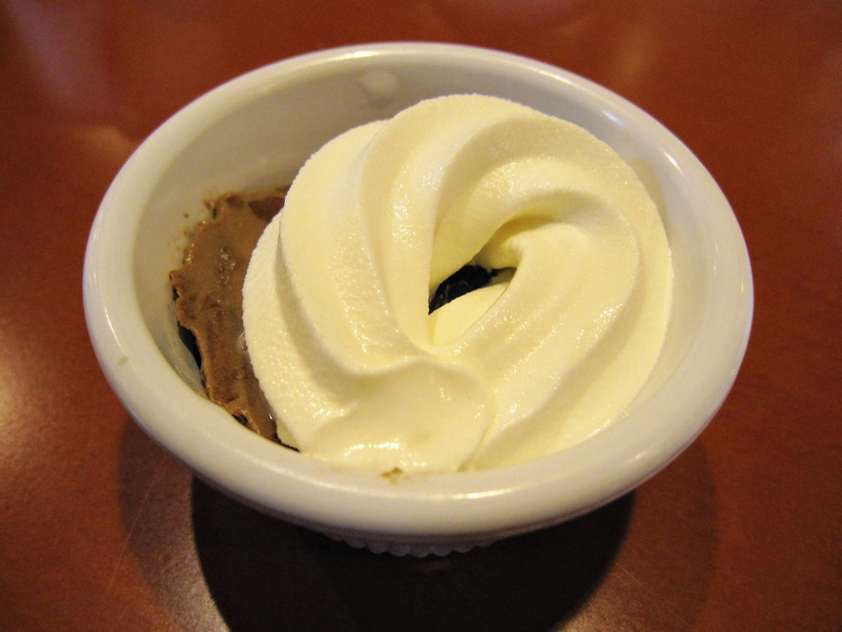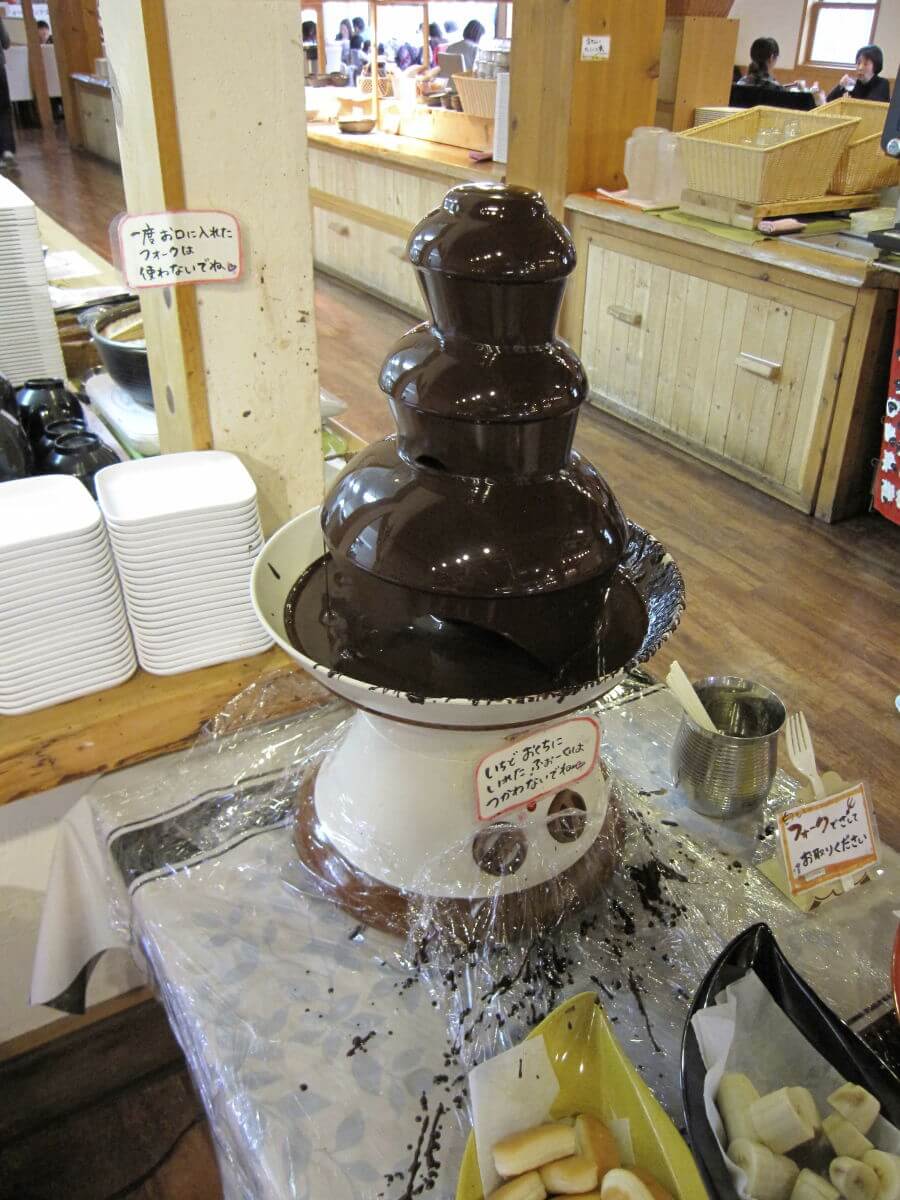 ここでチョコをすくって、ソフトクリームに掛けるという裏技も使えます。