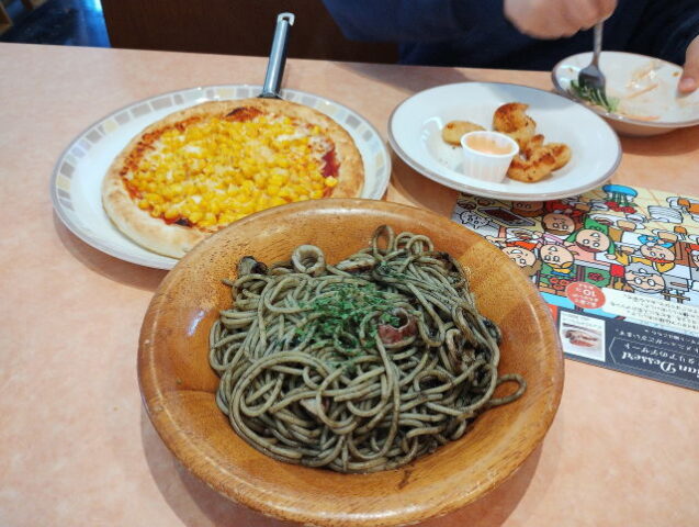 途中、早めのお昼をサイゼリヤさんで食べてから向かいます。