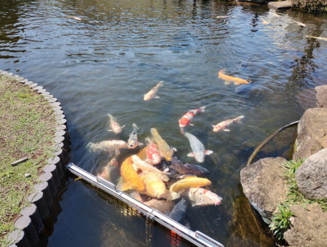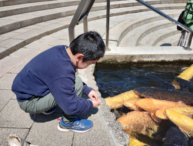 草魚の餌やりを終えてから館内に入ります。